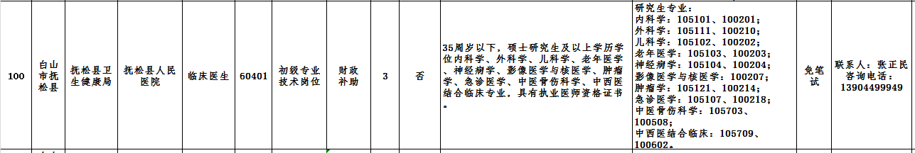 2025年白山市事业单位公开招聘高层次和急需紧缺人才工作即将开始,抚松县人民医院拟招聘3名临床医生,报名时间10月27日-10月31日,招聘岗位条件见下表: